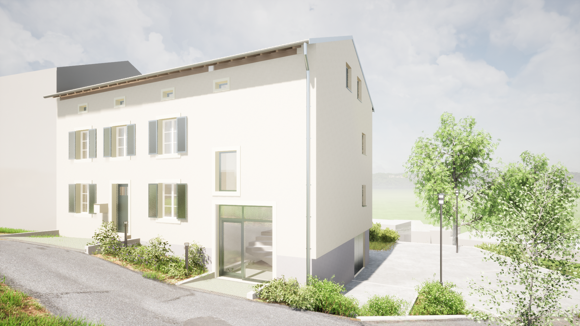 Cette maison de village, ancienne propriété de la famille du maître d’ouvrage, fait l’objet d’une transformation totale afin d’accueillir 4 logements. Le bâtiment existant a subi au fil des années des transformations et des altérations que le projet s’attache à déconstruire pour retrouver le coeur du bâtiment originel tout en profitant de son meilleur atout : une vue imprenable sur la vallée de la Moselle et les coteaux de Schengen.
