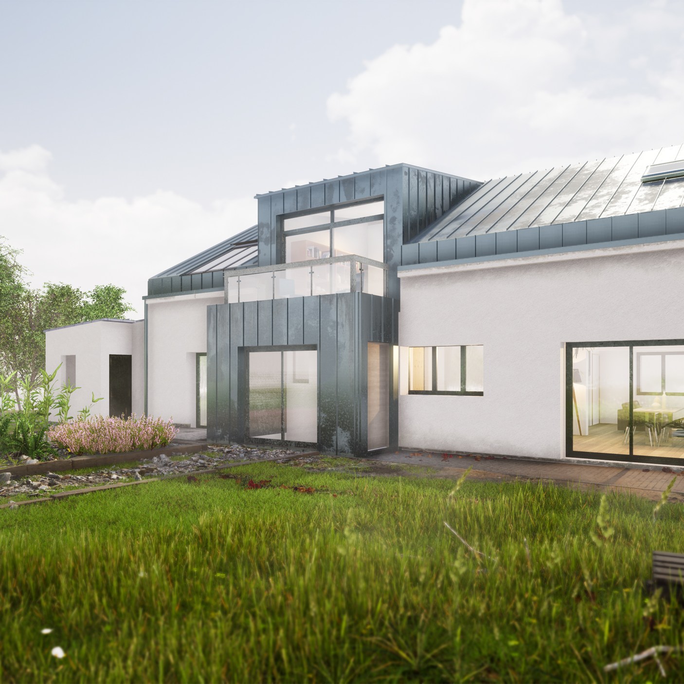 Le bâtiment existant, situé dans une impasse à l’écart de Himeling, est l’ancienne école du village. C’est aujourd’hui une maison d’habitation occupée par un jeune couple. Leur projet était d’aménager l’ensemble des combles, jusqu’alors inutilisés, et d’améliorer le rapport de la maison au jardin et au paysage environnant. Une rénovation énergétique était également nécessaire et la maison souffrait de quelques problèmes d’humidité.